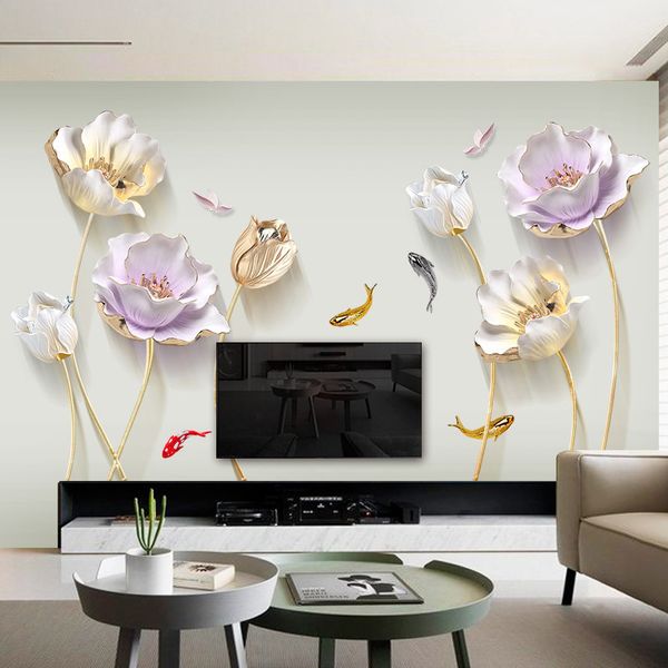 Chinese Style Flower 3d Wallpaper Wall Stickers Living Room
